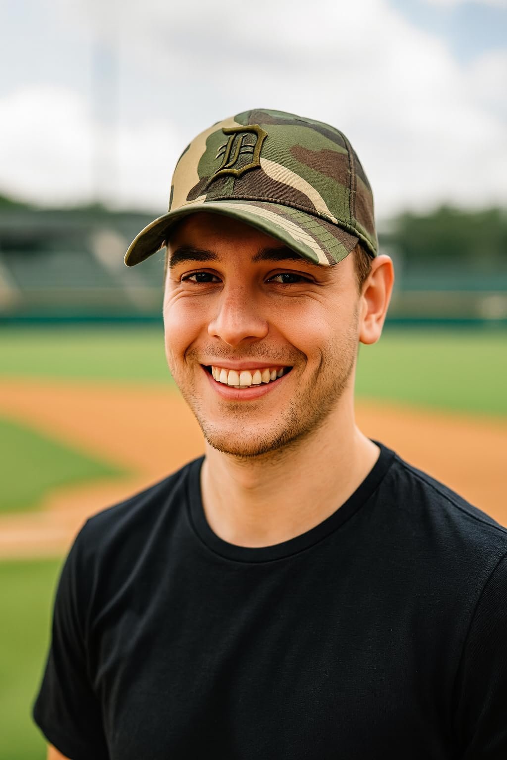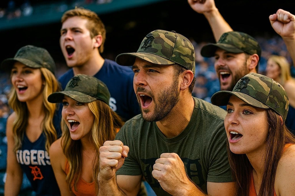 Officially Licensed Detroit Tigers Baseball Camouflage Hat Classic Orange Team Logo Adjustable MVP Structured Embroidered Cap. Design features the always classic team logo embroidered on the front panel on an adjustable camo solid cap. This is a limited edition style that is perfect for the true Detroit sports fan in your life.