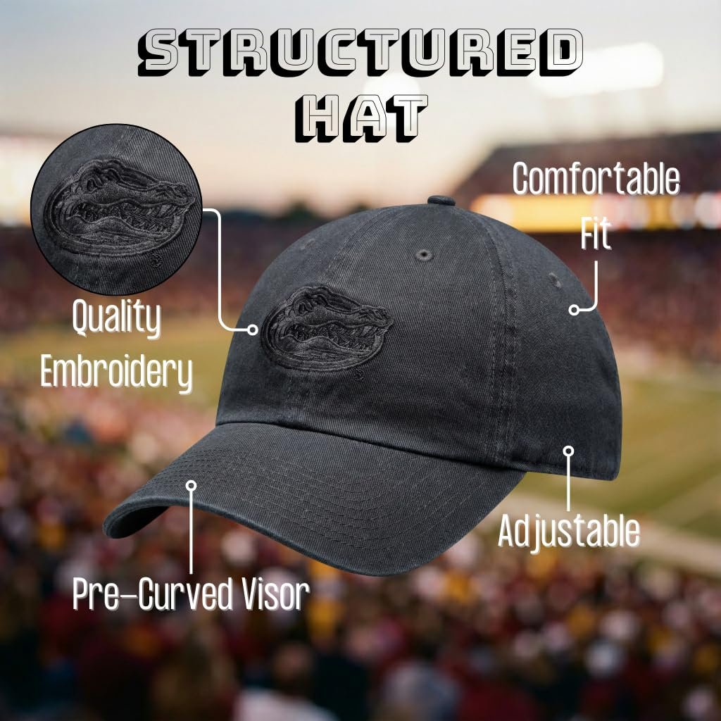 Officially Licensed University Florida Gators Classic Black Hat. Design features the always classic university team logo embroidered on the front panel with an adjustable strap closure on the back. This is a limited edition style that is perfect for yourself and the true Florida Gators fan in your life.